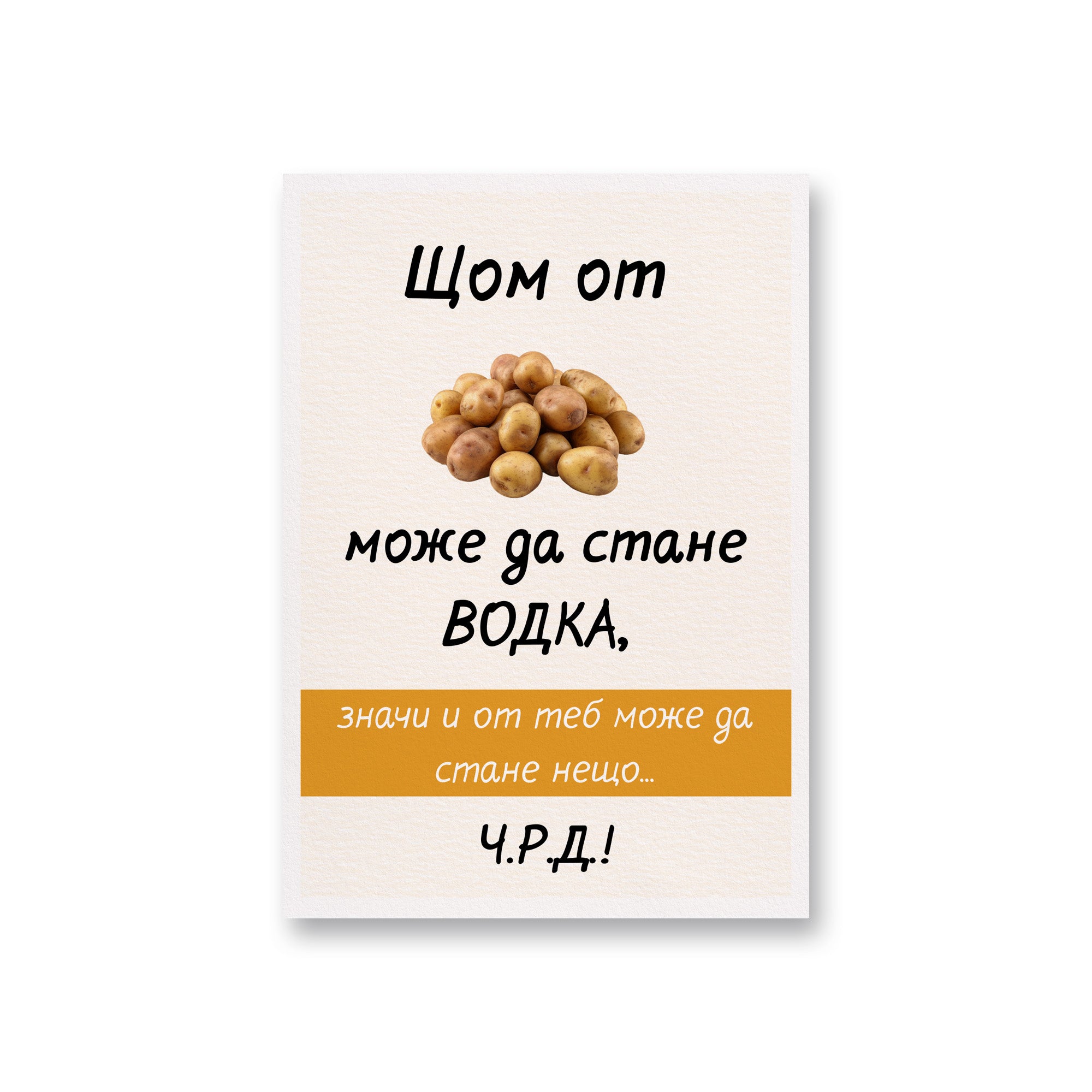 Тази забавна картичка с оригинален дизайн Щом от картофи може да стане водка... е уникален начин да честитите Рожден ден. Опитахме се да направим весели дизайни с шеговити послания за всички с чувство за хумор!