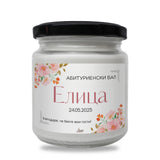 Абитуриенски бал /име/, с розови цветя Персонализирана Ароматна Соева Свещ