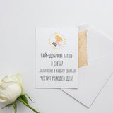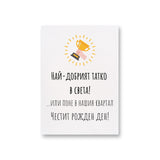 Тази забавна картичка с оригинален дизайн за баща: Най-добрият татко на света! Или поне в нашия квартал. Честит рожден ден! е уникален начин да го зарадвате за рожденния му ден.
