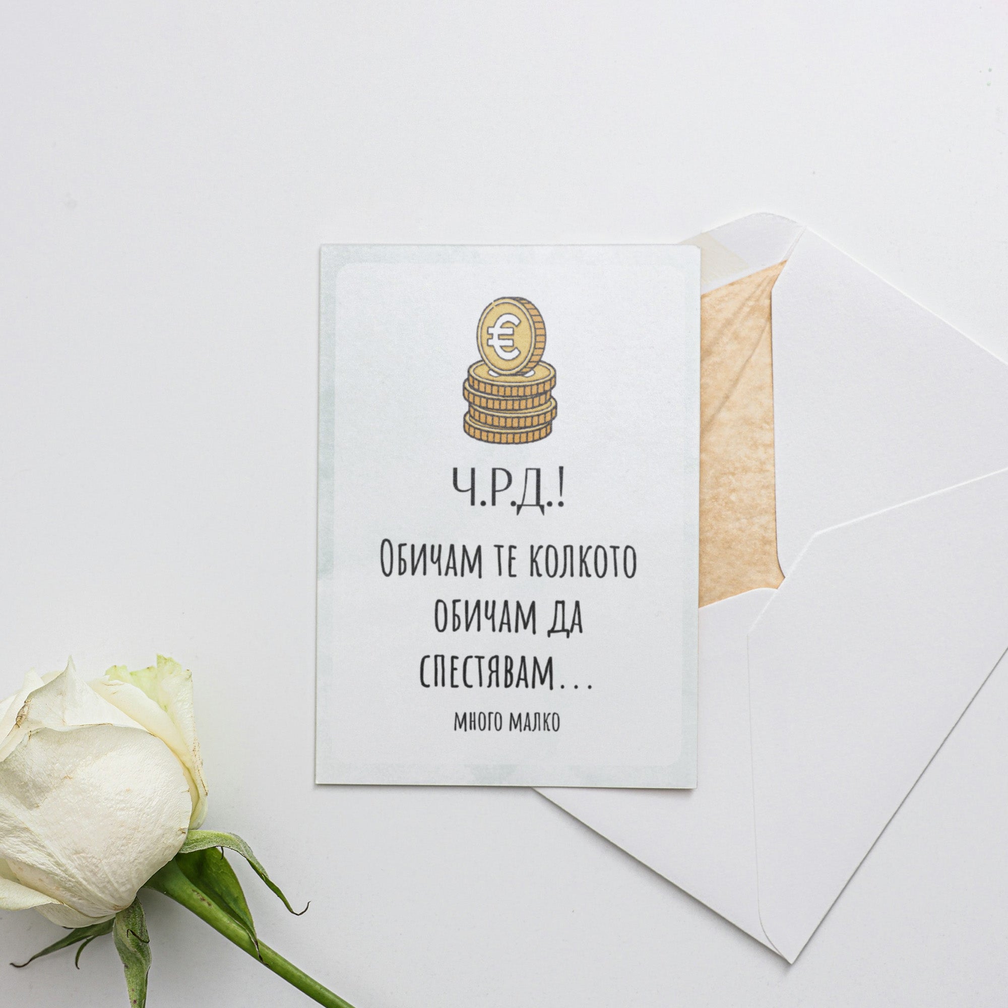ЧРД! Обичам те колкото обичам да спестявам... Картичка за рожден ден