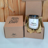 Тази ръчно изработена свещ от 130гр или 220гр натурален соев восък в стъклено бурканче, гарантира 20ч или 40ч горене. Естествените аромати ще изпълнят вашата стая, офис или баня с приятен аромат.