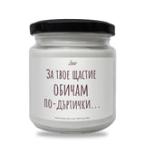За твое щастие обичам по-дъртички... Ароматна соева свещ за рожден ден за него
