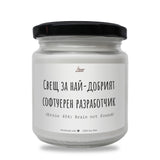 Свещ за най-добрият софтуерен разработчик  Ароматна соева свещ