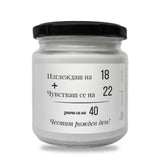 Изглеждаш на 18, чувстваш се на 22 Ароматна соева свещ за рожден ден