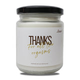 Уникален подарък за приятели, роднини, колеги, със стилен дизайн: Thanks for all the orgasms Ароматна Соева Свещ - Подарете с любов за Коледа, Рожден Ден, Имен Ден, 8-ми март, годишнина или друг специален повод