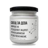 Оригинален подарък за Зодии с уникален дизайн: Свещ за Дева Ароматна Соева Свещ - Подарете с любов за 8-ми март, Рожден Ден, Имен Ден, годишнина или друг специален повод.