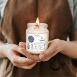 Тази ръчно изработена свещ от 220гр натурален соев восък в стъклено бурканче, гарантира 40ч горене. Естествените аромати от етерични масла ще изпълнят вашата стая, офис или баня с приятен аромат.