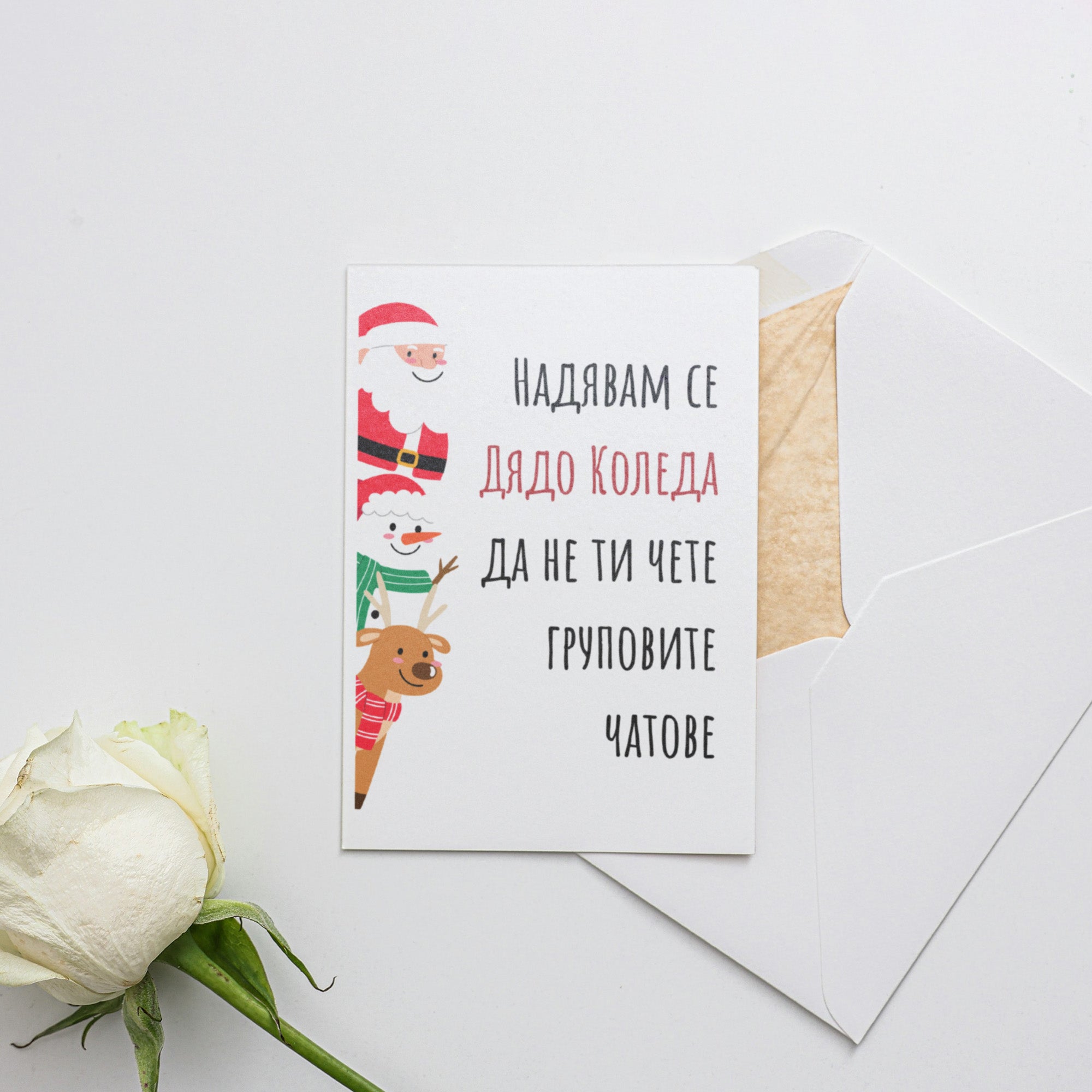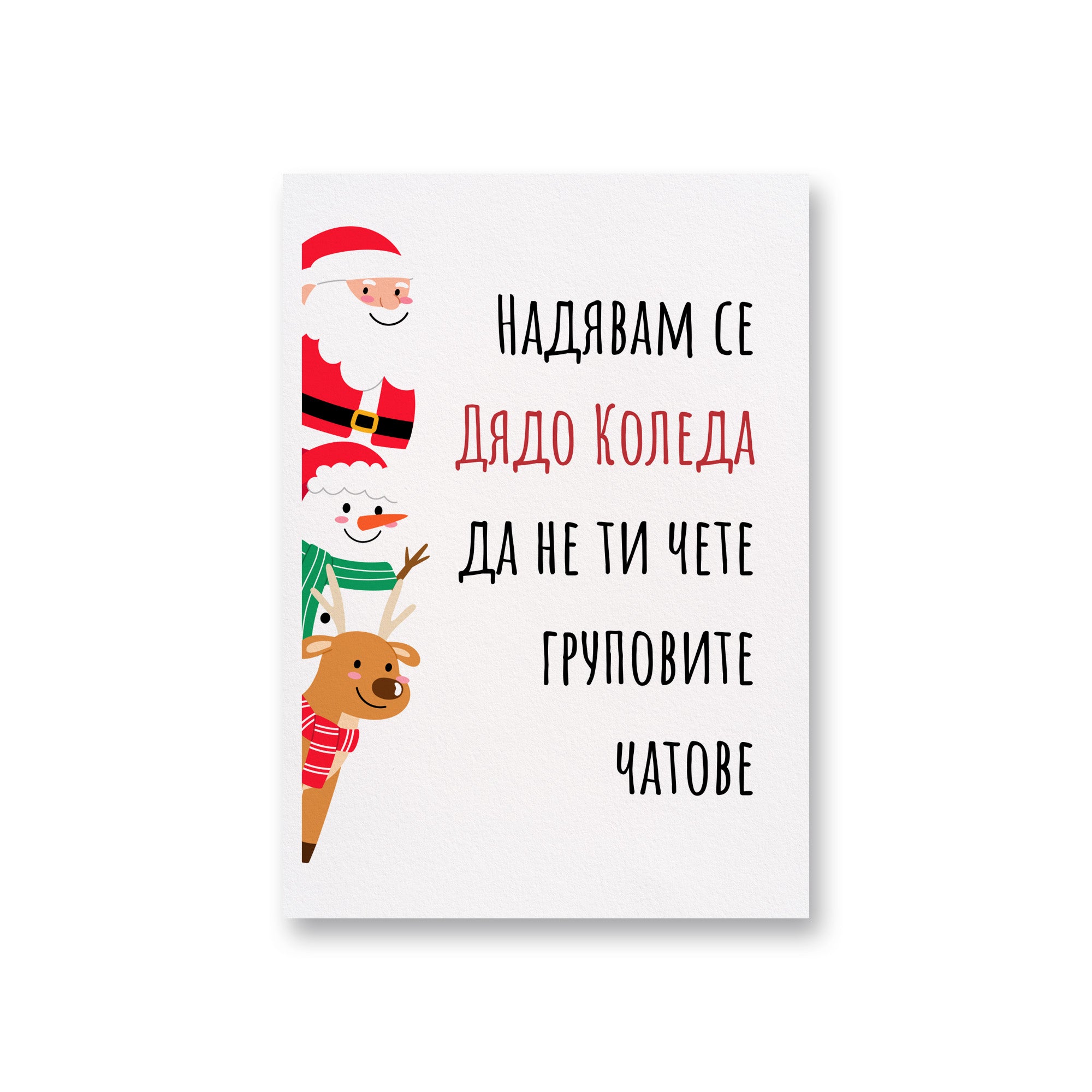 Надявам се Дядо Коледа да не ти чете груповите чатове Картичка