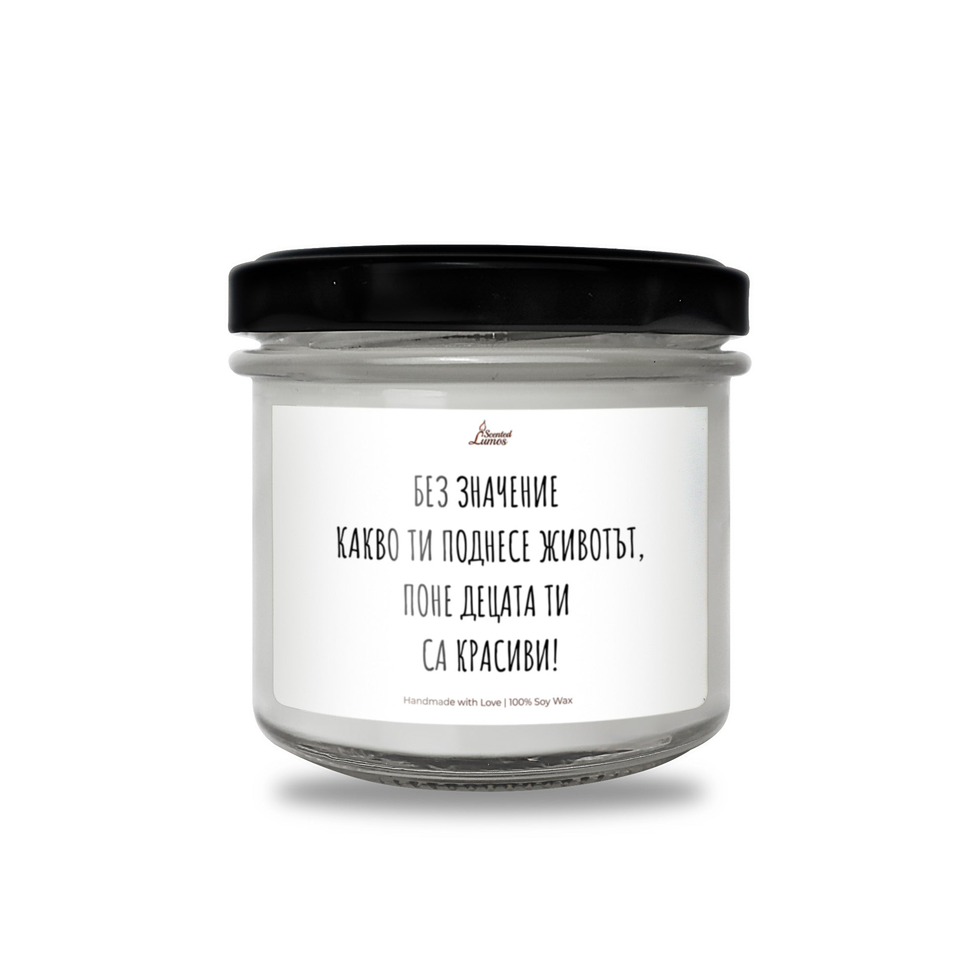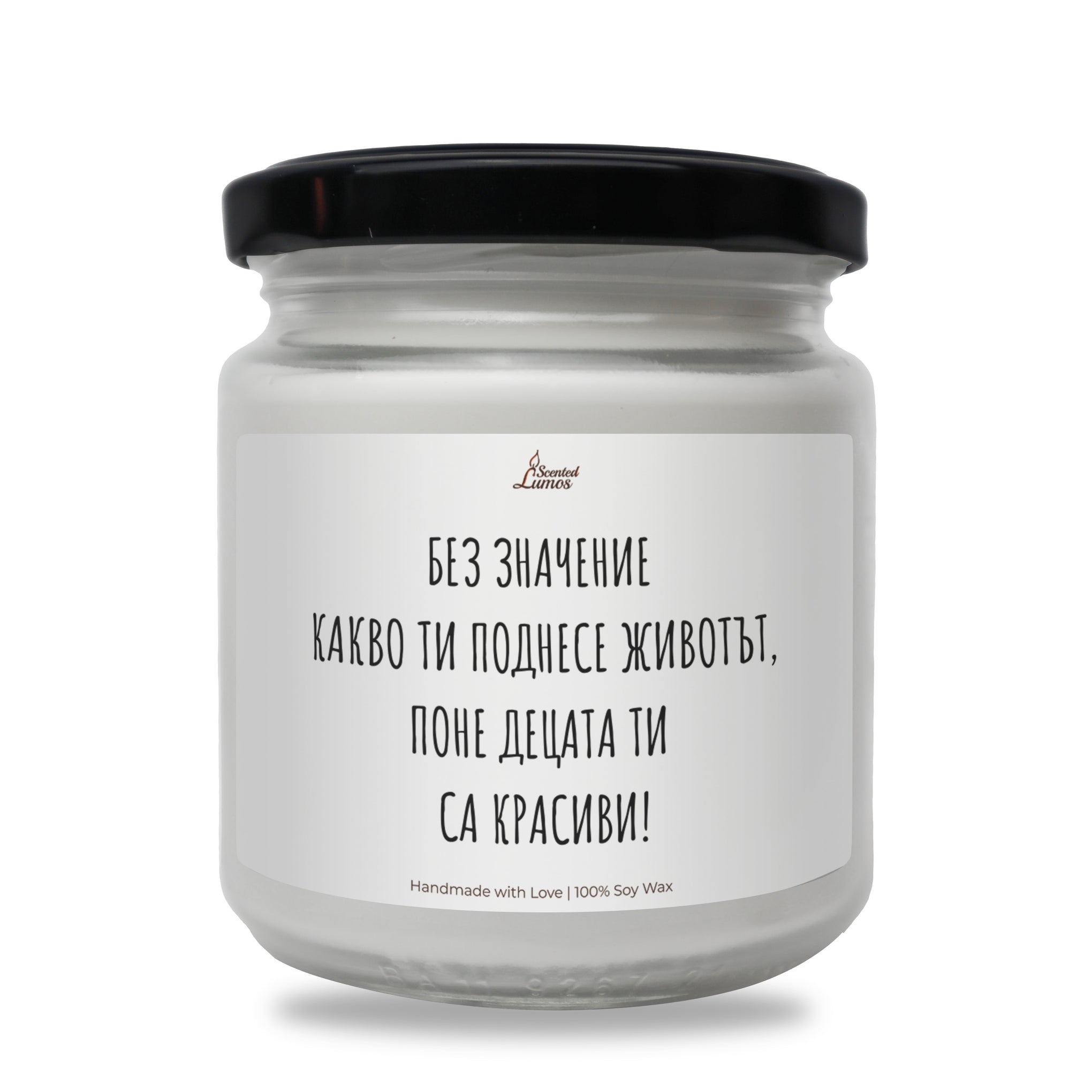 Без значение какво ти поднесе животът, поне децата ти са красиви! Ароматна соева свещ за майка