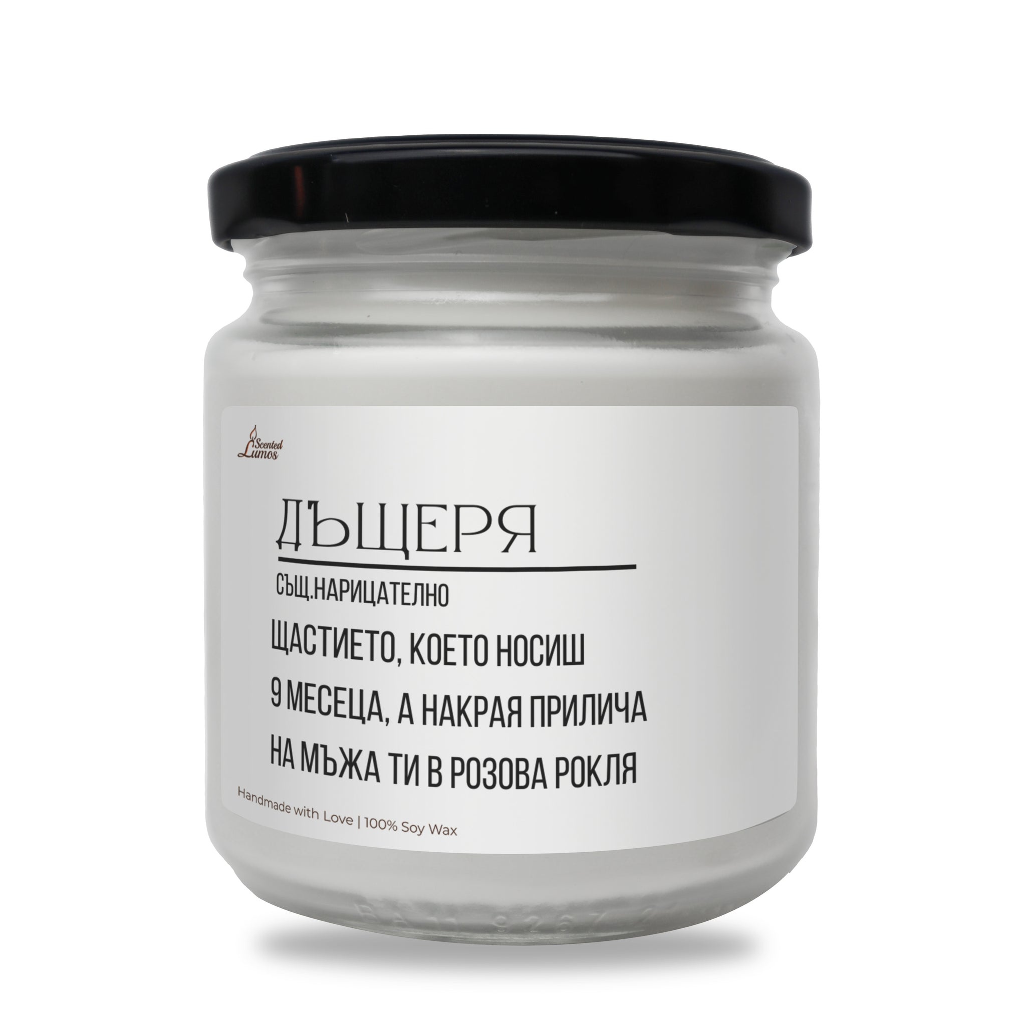 Оригинален и забавен подарък за дъщеря за рожден ден, имен ден или дори без повод с интересен дизайн: Дефиниция за дъщеря - Щастието, което носиш 9 месеца, а накрая прилича на мъжа ти в розова рокля.