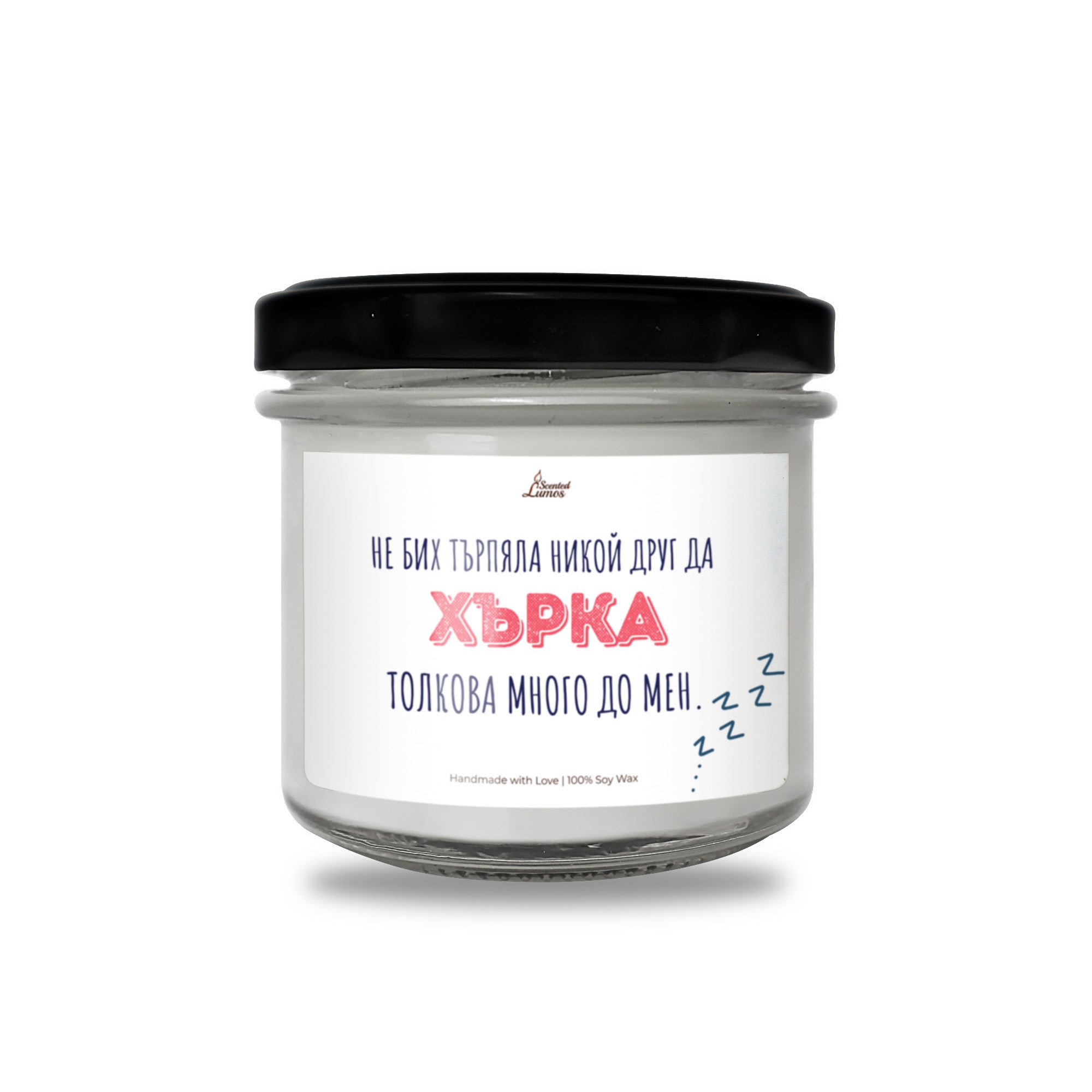Не бих търпяла никой друг да хърка толкова много до мен Ароматна соева свещ за него