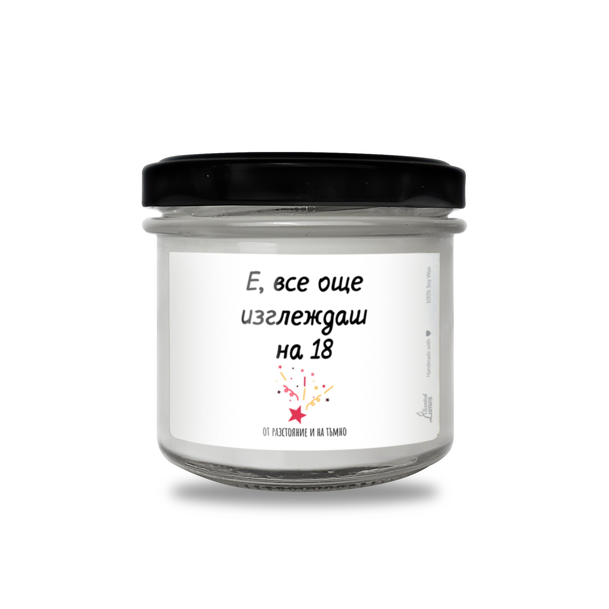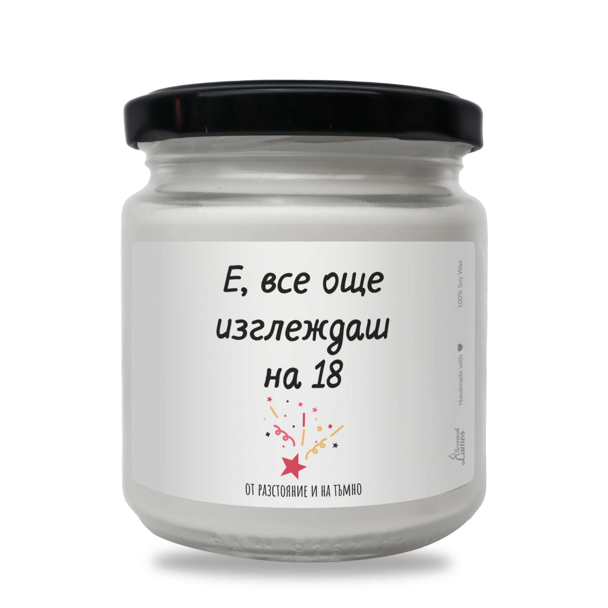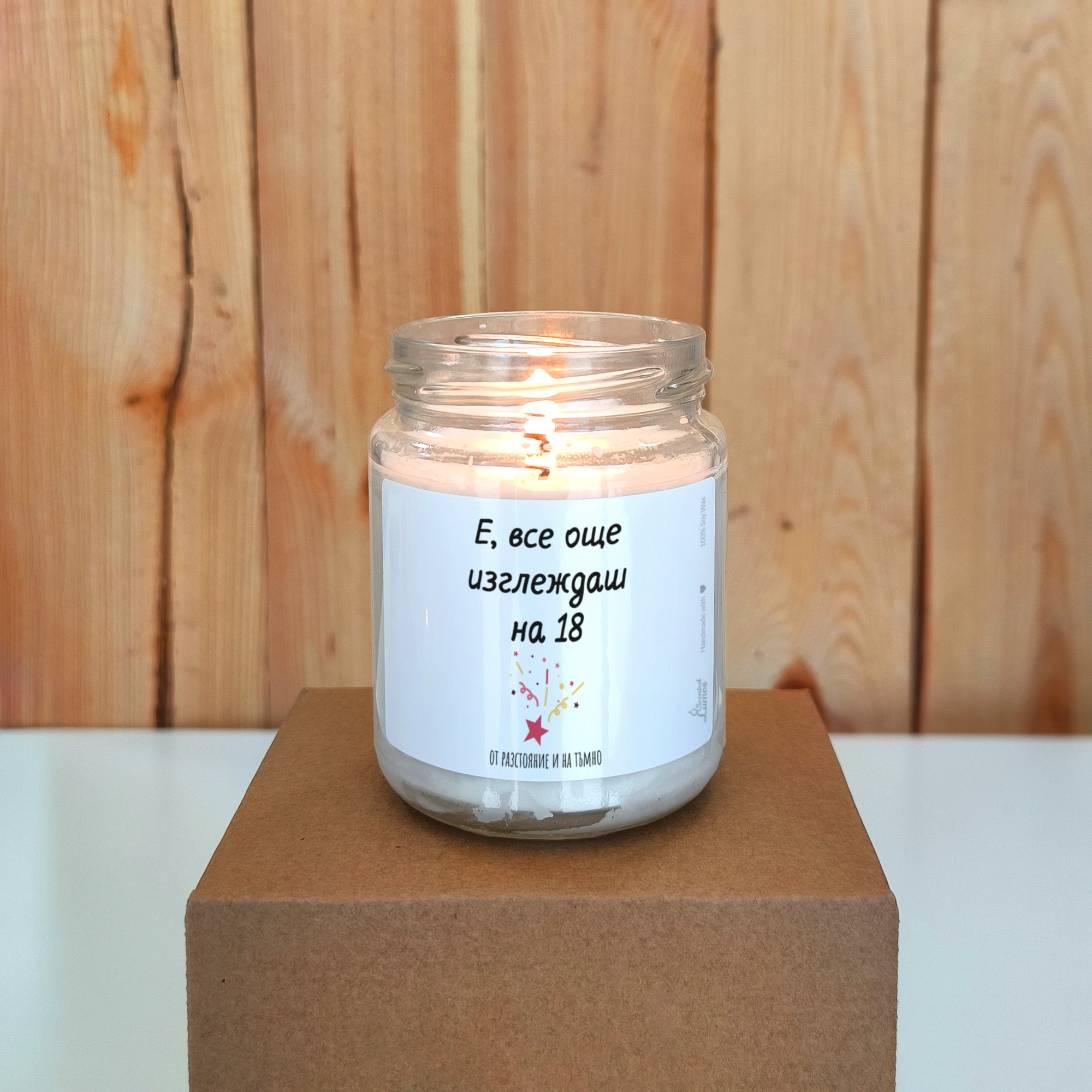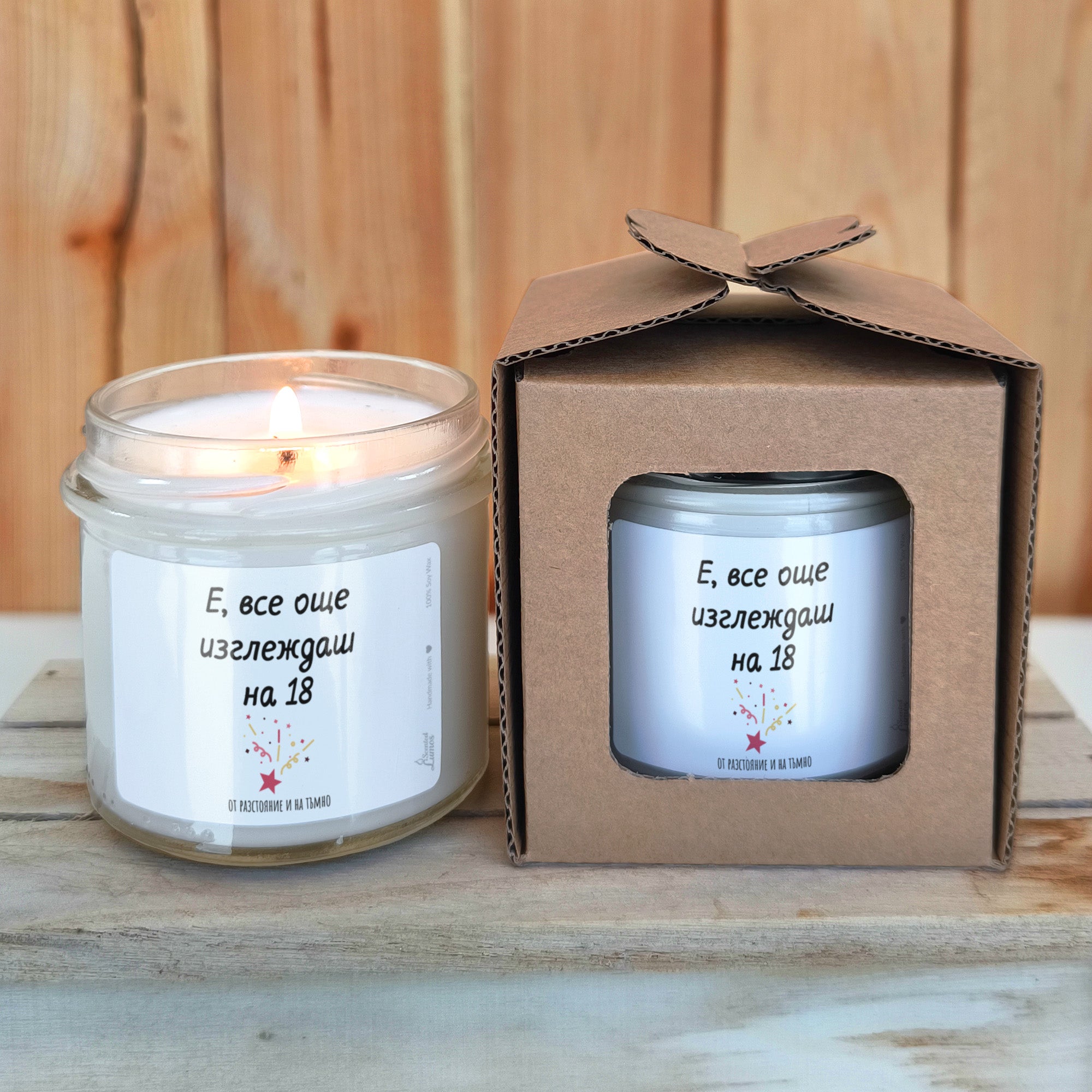 Е, все още изглеждаш на 18 - от разстояние и на тъмно Ароматна соева свещ за рожден ден
