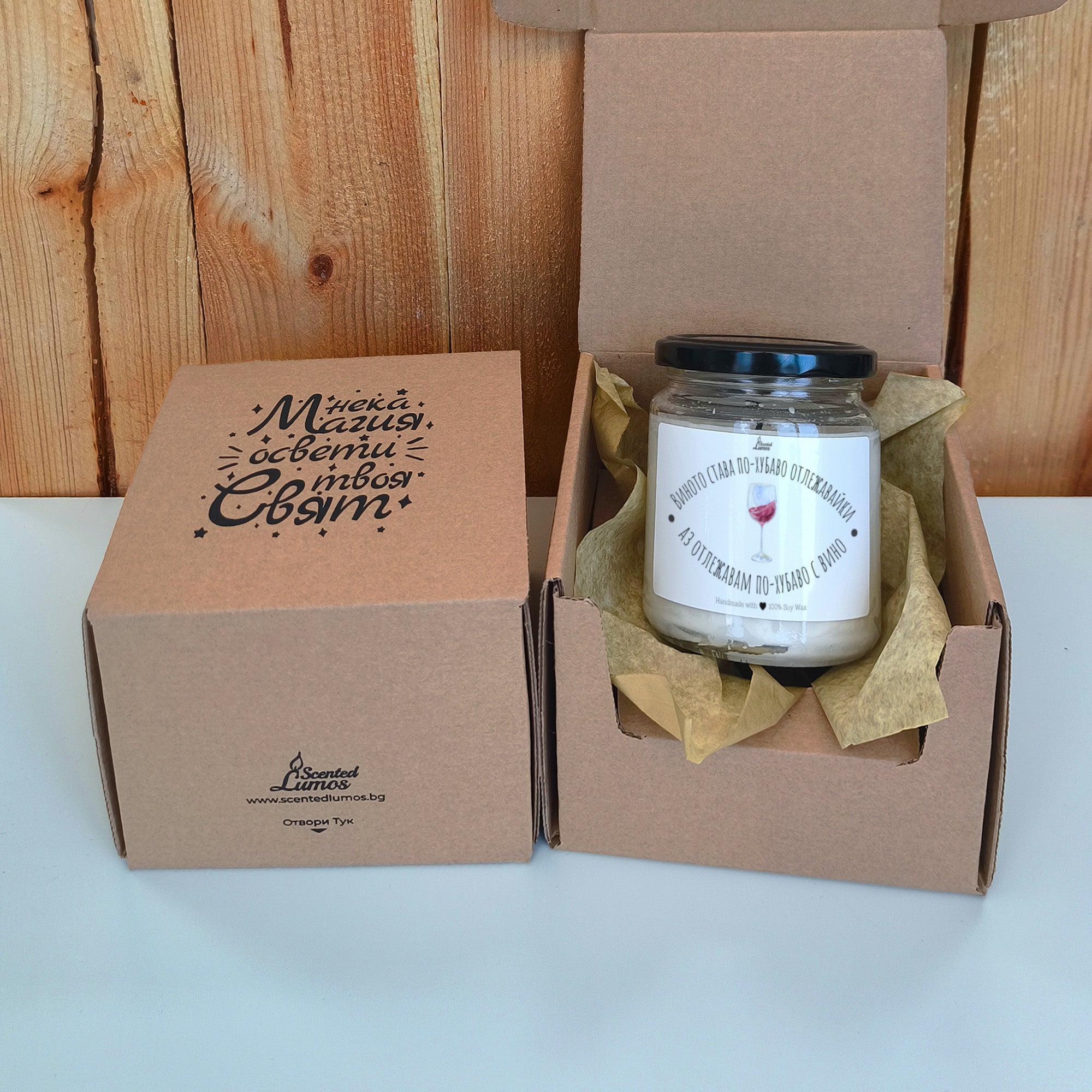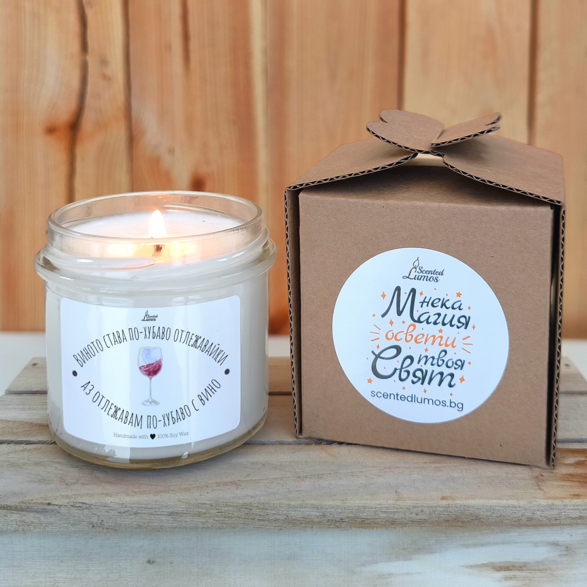Виното става по-хубаво отлежавайки, аз отлежавам по-хубаво с вино Ароматна соева свещ