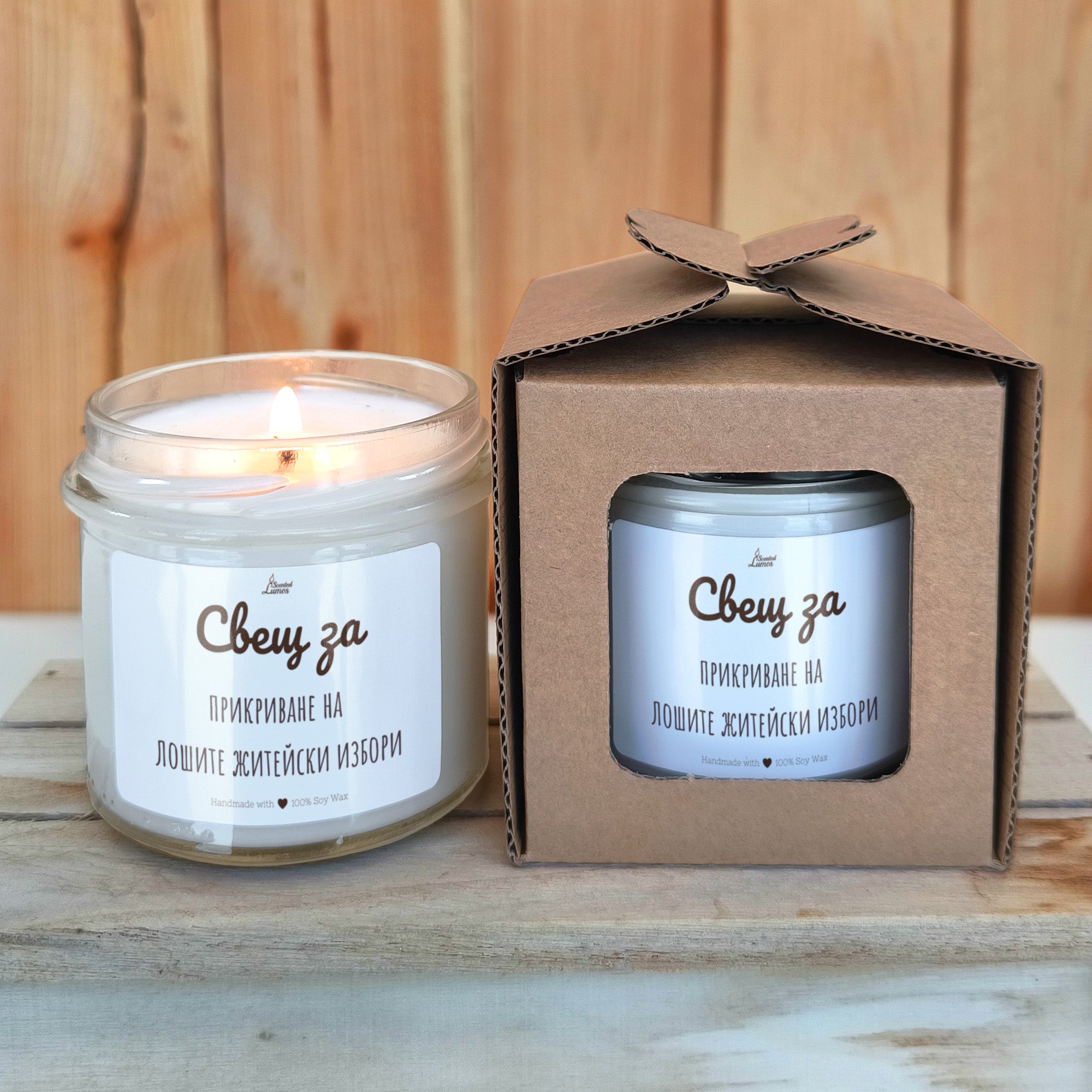 Свещ за прикриване на лошите житейски избори Ароматна соева свещ
