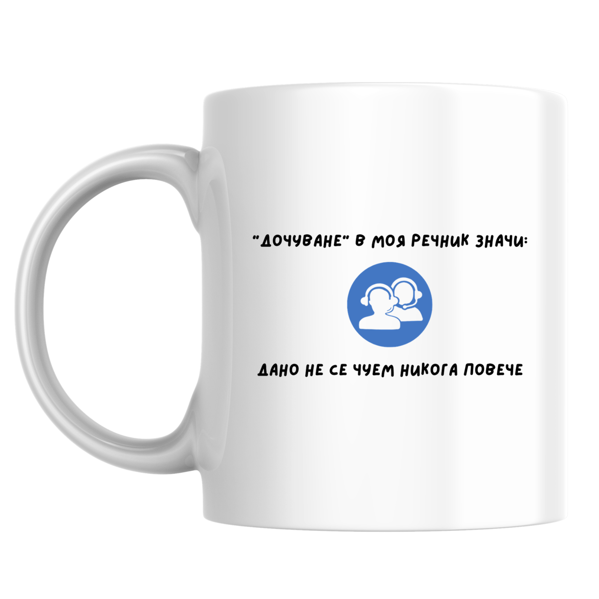 Търсите подарък, който казва 'Обичам те' по незабравим начин? Тази чаша е създадена да бъде повече от предмет – тя е спомен, който се пренася във времето. С дизайна: Дочуване, тя е перфектният избор за сантиментална или забавна изненада.