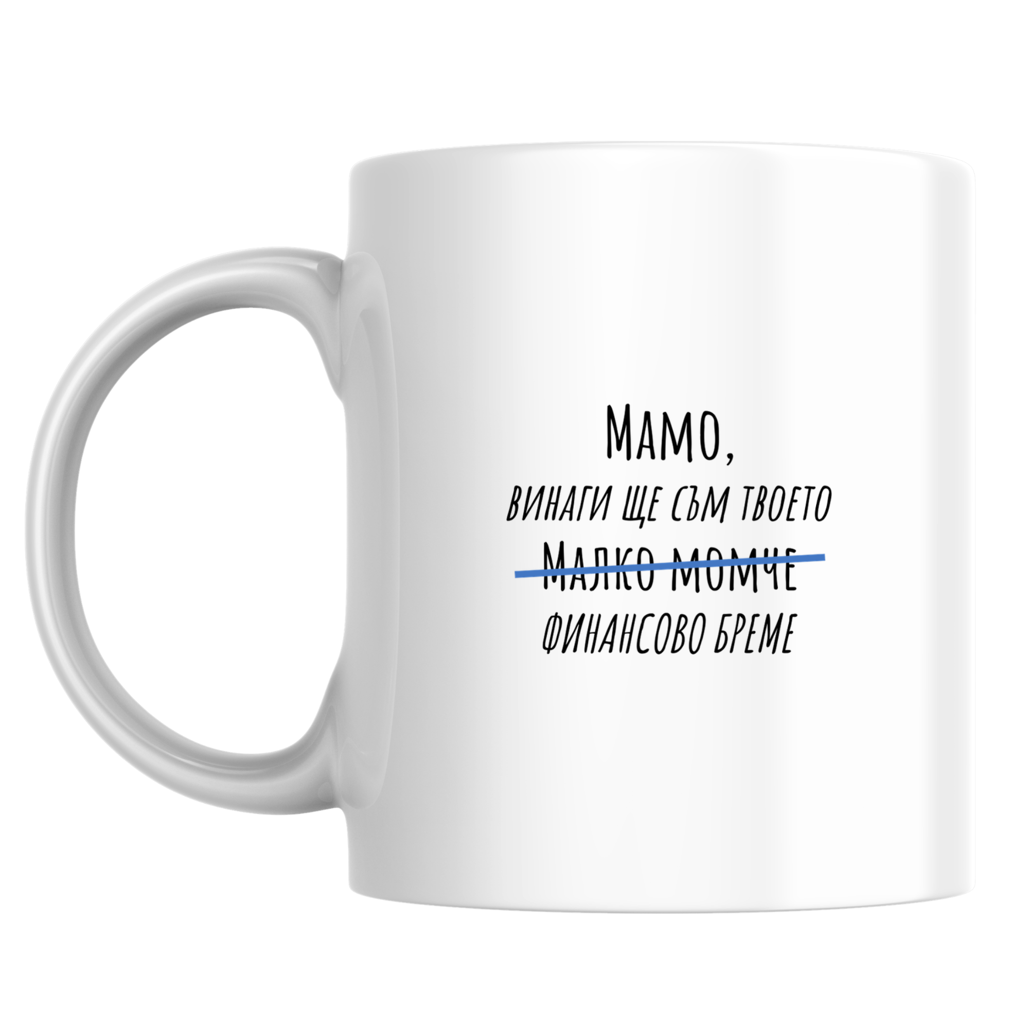 Търсите подарък, който казва 'Обичам те' по незабравим начин? Тази чаша е създадена да бъде повече от предмет – тя е спомен, който се пренася във времето. С дизайна: Мамо, винаги ще съм твоето малко момче, тя е перфектният избор за сантиментална или забавна изненада.