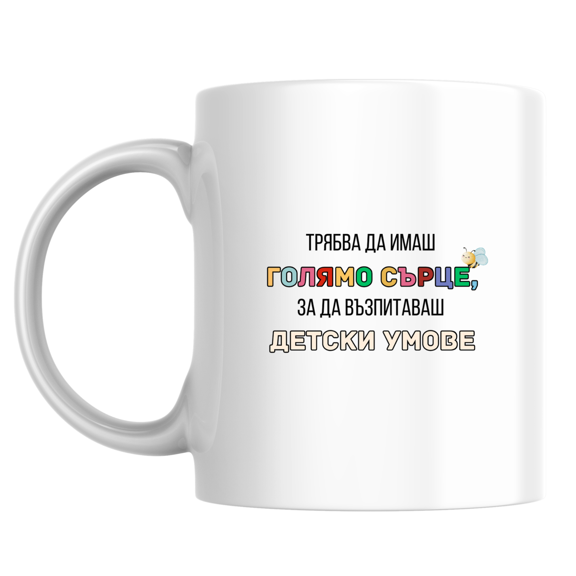 Трябва да имаш голямо сърце, за да възпитаваш детски умове - Бяла чаша 350 мл