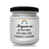 Мирише на детски смях, креативен хаос и много търпение Ароматна соева свещ за учител