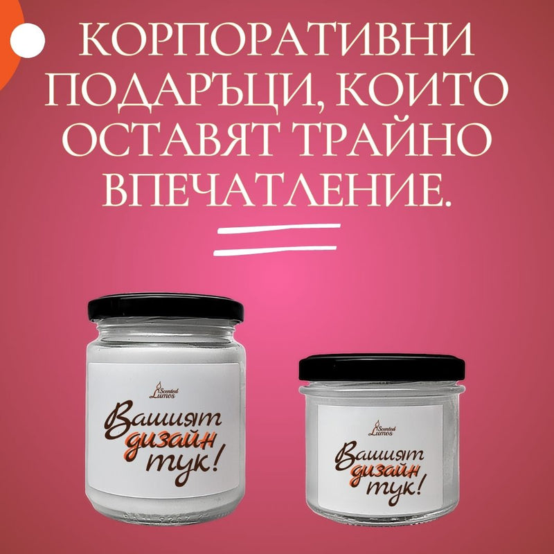Представете си елегантна свещ с Вашето лого, чийто аромат деликатно напомня за Вашата грижа и внимание към детайла.